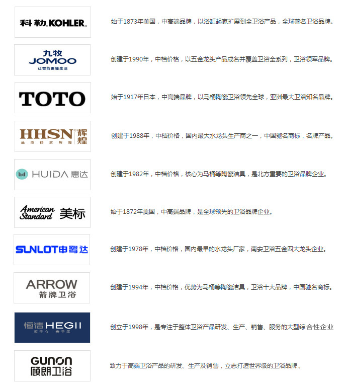 2019年度衛(wèi)浴十大品牌榮譽(yù)榜