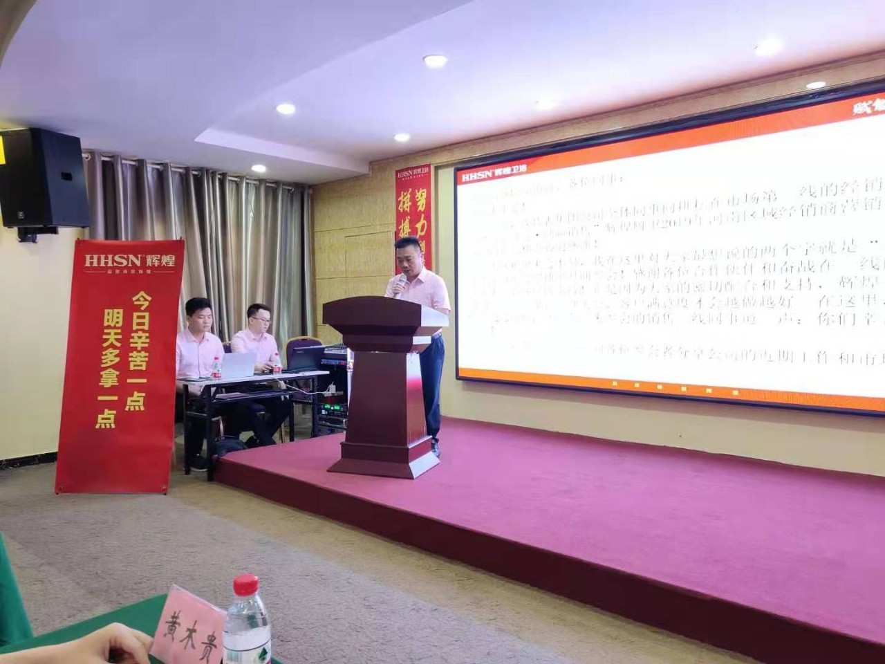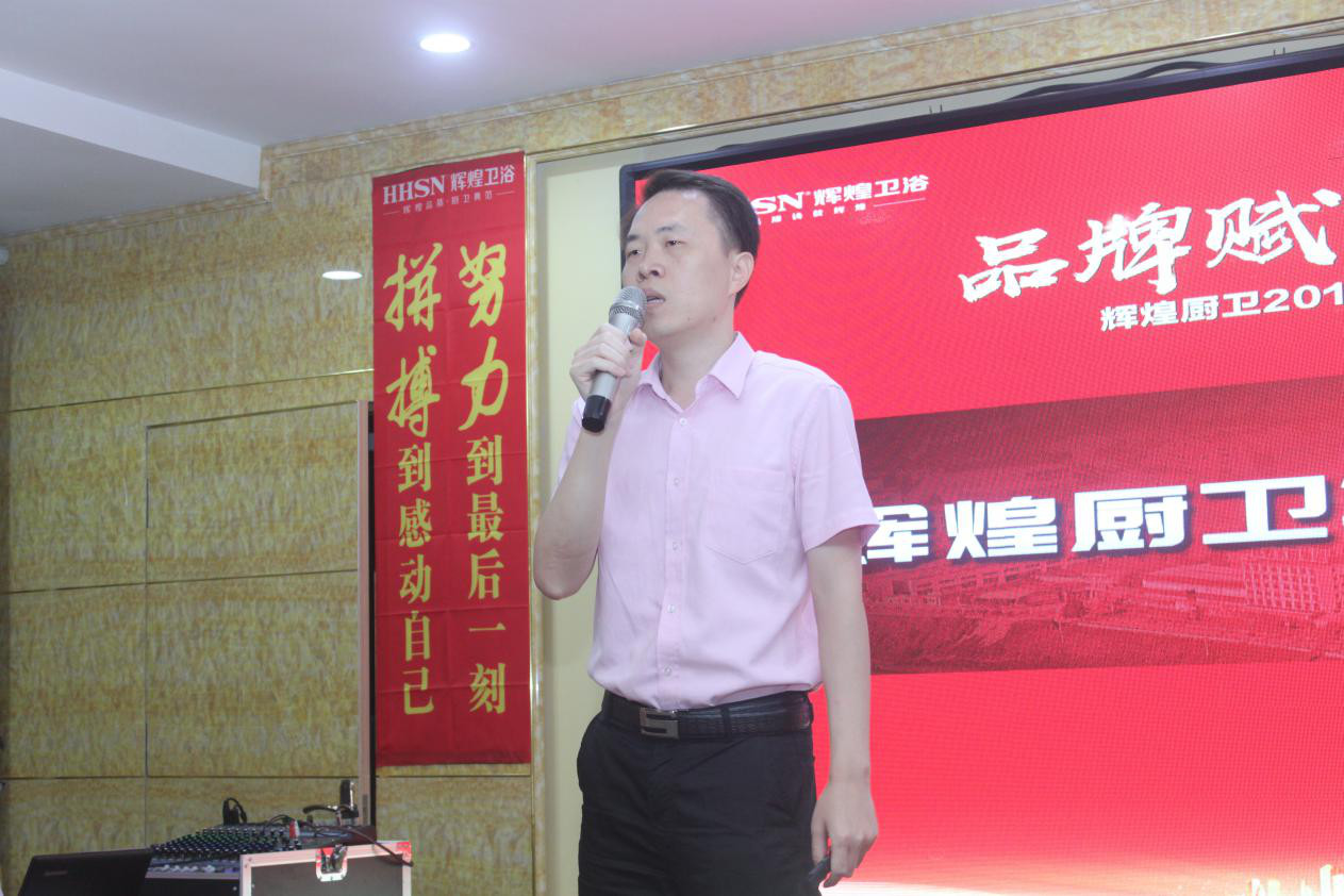 輝煌廚衛(wèi)公司副總經(jīng)理黃木貴先生針對公司2019年上半年運營情況做了總結(jié)報告,而后詳細講解了未來公司將從電商、工程、家裝等多個渠道給到終端門店的賦能方式。下半年,公司將從品牌傳播、終端促銷活動、銷售幫扶等各方面進行重點打造,實現(xiàn)全國終端門店業(yè)績倍增。