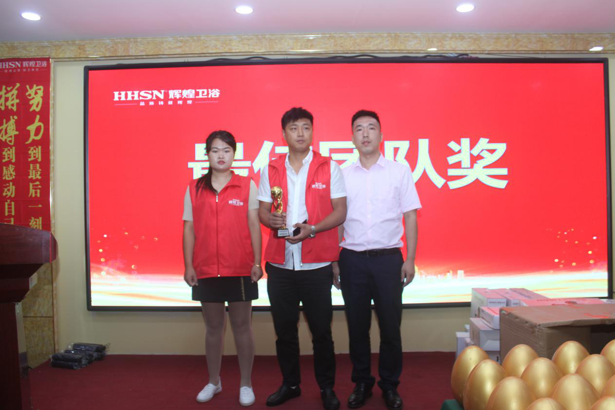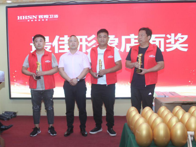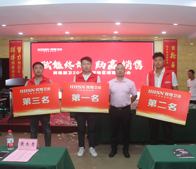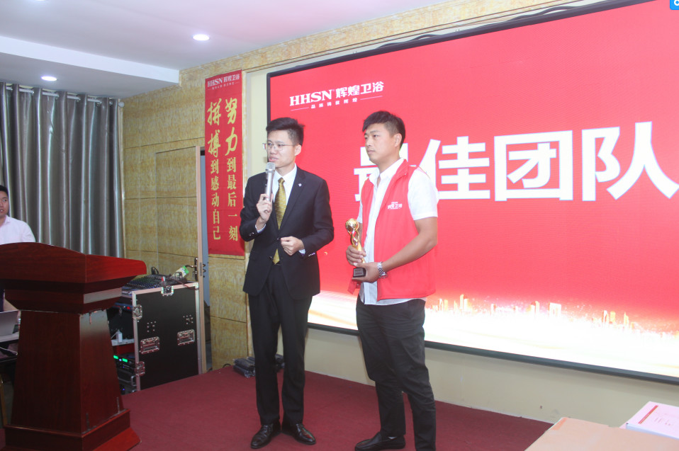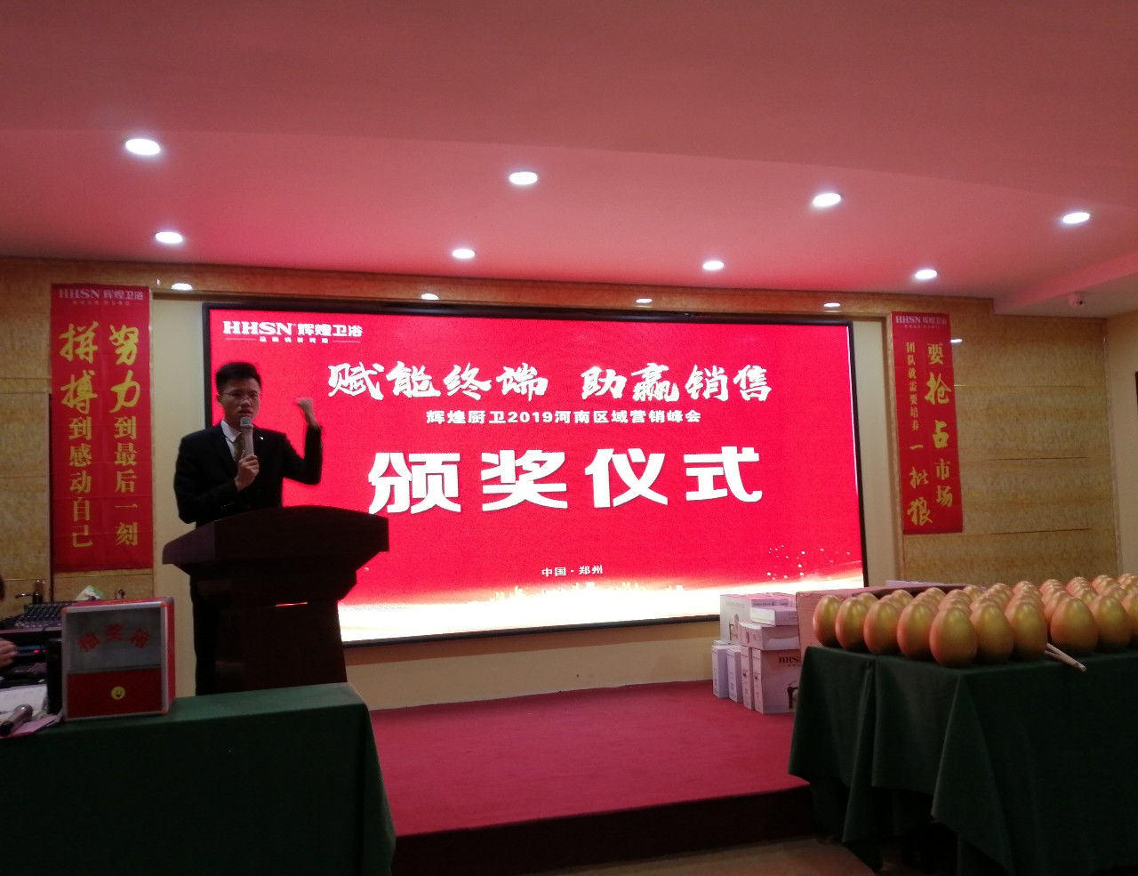 輝煌廚衛(wèi)2019年河南區(qū)域營銷峰會頒獎儀式在激昂的音樂中拉開了帷幕。輝煌廚衛(wèi)公司市場部經(jīng)理黃金榜先生現(xiàn)場公布了獲得2019年最佳團隊獎及最佳形象店面的優(yōu)秀經(jīng)銷商。